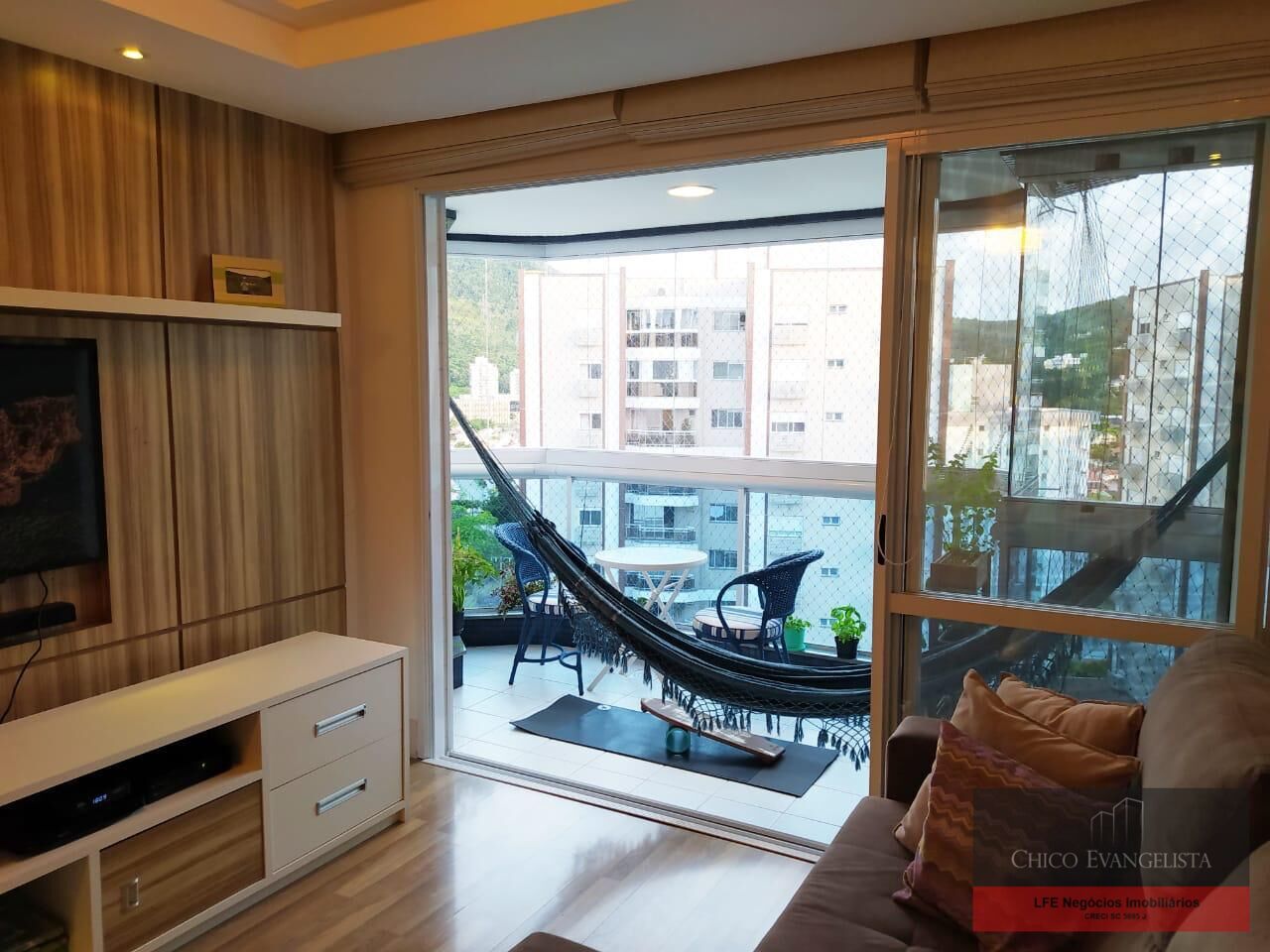 Possui ampla sala para 2 ambientes, sacada com fechamento reiki e vista panorâmica, cozinha com móveis planejados, área de serviço e bwc auxiliar.