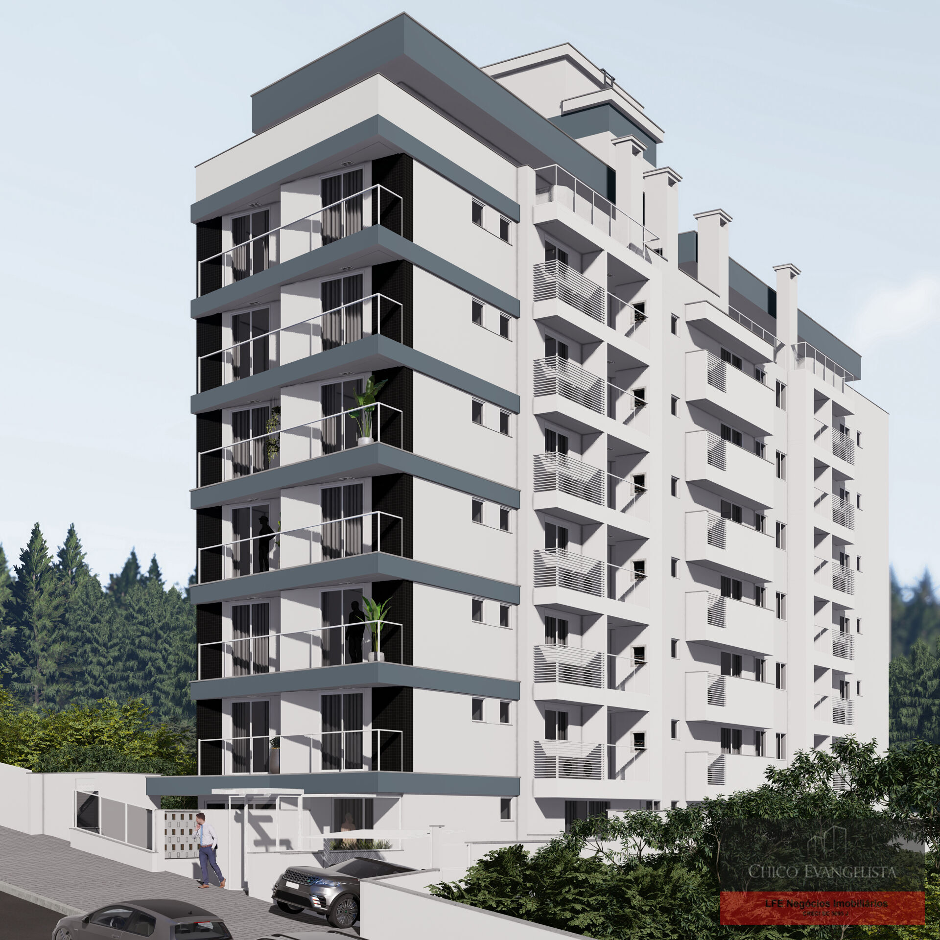 A imagem artística das fachadas é referente ao estudo preliminar e passará por otimização e ajustes em sua versão final que será executada na obra.